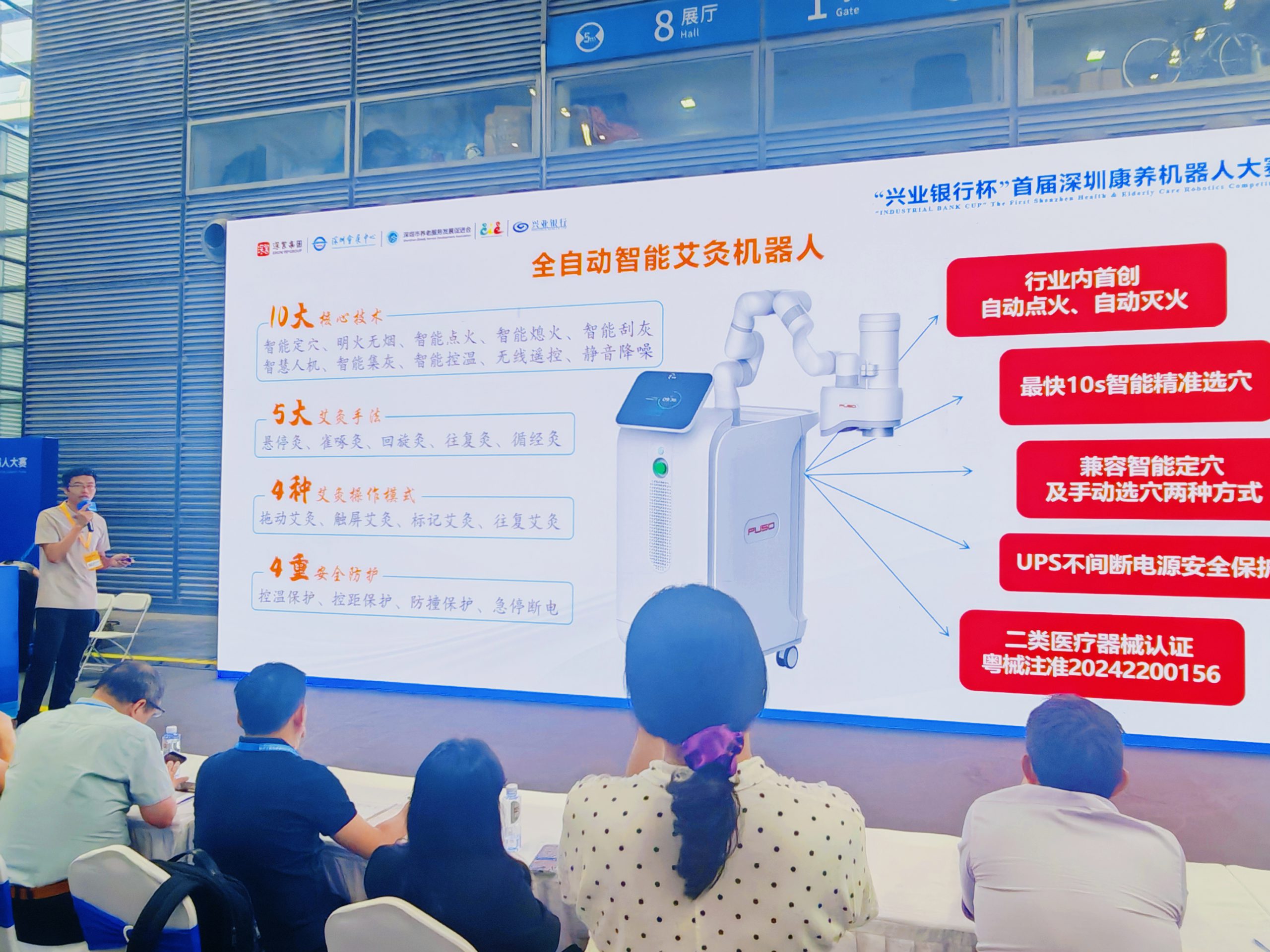 9月12日,2025深圳国际智慧养老产业博览会暨“兴业银行杯”首届深圳康养机器人大赛盛大开幕,这场以“智能科技助力养老服务”为主题的赛事,吸引了近百家中外企业携 200 余款康养机器人同台竞技。深圳市朴硕生命科技有限公司携旗下全自动智能艾灸机器人精彩亮相,凭借其创新技术与人文关怀特质,在赛事中脱颖而出,不仅赢得了乐龄体验官的交口称赞,更荣获“十佳人文关怀奖”这一重要奖项。