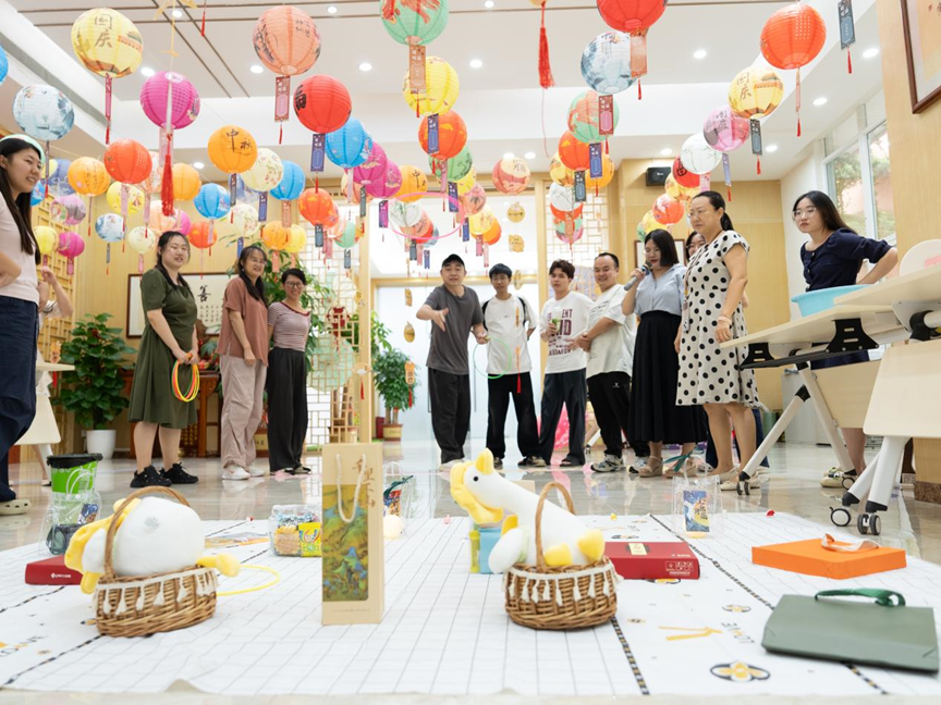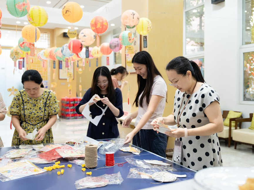 游戏过后的手工环节更是尽显温馨。现场摆放着整齐的花灯、挂件材料包,大家围坐在一起,有的认真搭建花灯骨架,有的精心挑选装饰贴纸,遇到难题时互相支招,温馨的画面让人倍感温暖。一个个造型各异、充满创意的花灯陆续诞生。这些亲手制作的作品,成为今年中秋最特别的纪念,如今它们或许正被摆放在家中显眼位置,诉说着这段温暖时光。